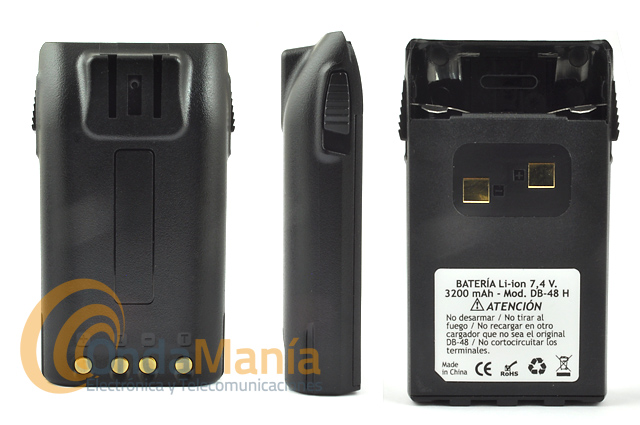 Pack compuesto por batería de alta capacidad 3800 mAh y cargador de 220 V (CON EL PACK REGALO DEL CABLE DE CARGA EN VEHICULO A 12 V CON TOMA DE ENCENDEDOR) para Dynascan DB-48 y R-46 y Midland CT-790.