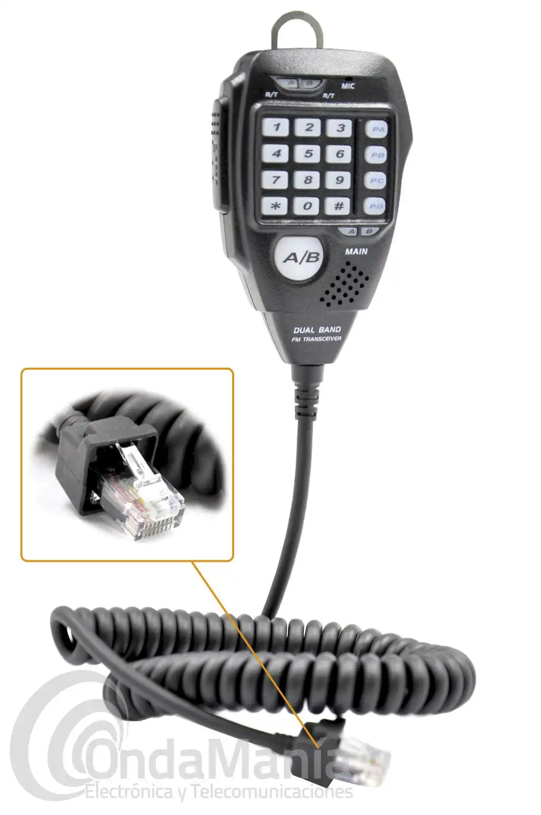 Micrófono de reemplazo-recambio original para la emisora doble banda Anytone AT-778UV con pulsador PTT, teclado y conector tipo RJ45