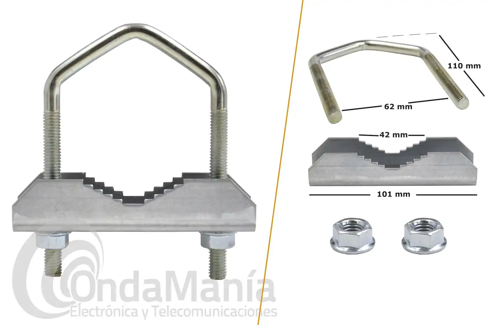 SOPORTE A MASTIL CON MORDAZA DOBLE EN "U" CON 1,16 MTS DE LONGITUD