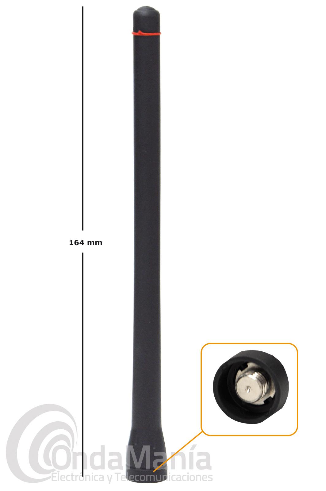 Antena de VHF de 136 a 174 Mhz con una longitud de 164 mm compatible con equipos profesionales ICOM o que lleven conector de antena tipo ICOM.