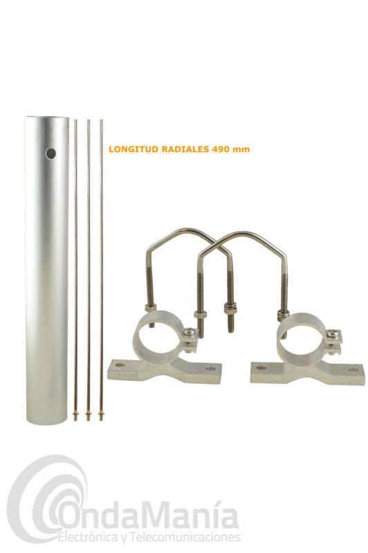 Antena de fibra doble banda UHF - VHF con una longitud de 2,5 m en un solo tramo, con conector N, 6 dBi en VHF y 8 dBi en UHF, con 350 W de potencia máxima.