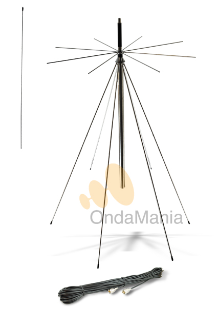 Antena discono Diamond D-130 (original Japón) fabricada en aluminio y acero inoxidable, ideal para utilizarla con escaner aunque también puede transmitir en 50, 144 y 430 Mhz. Incluye 15 metros de cable RG-58 con conectores PL.