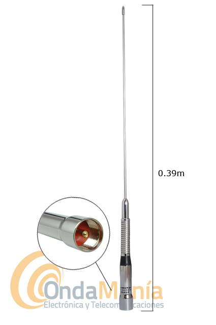 Antena doble banda con muelle UHF/VHF original Diamond Slim Gainer D-Star con 0,39 cm de longitud, 80 g. de peso.