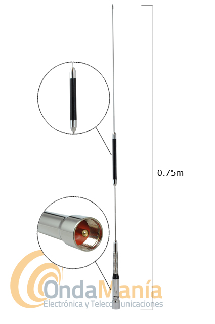 Antena doble banda con muelle UHF/VHF original Diamond Slim Gainer D-Star con 0,75 cm de longitud, 133 g. de peso.
