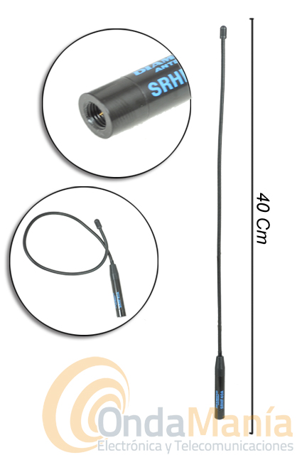 Antena doble banda super-flexible Diamond original Japón SRHF40A con conector SMA y multibanda en RX (120/144/150/300/430/450/800/900 MHZ) con una longitud de 40 cm.