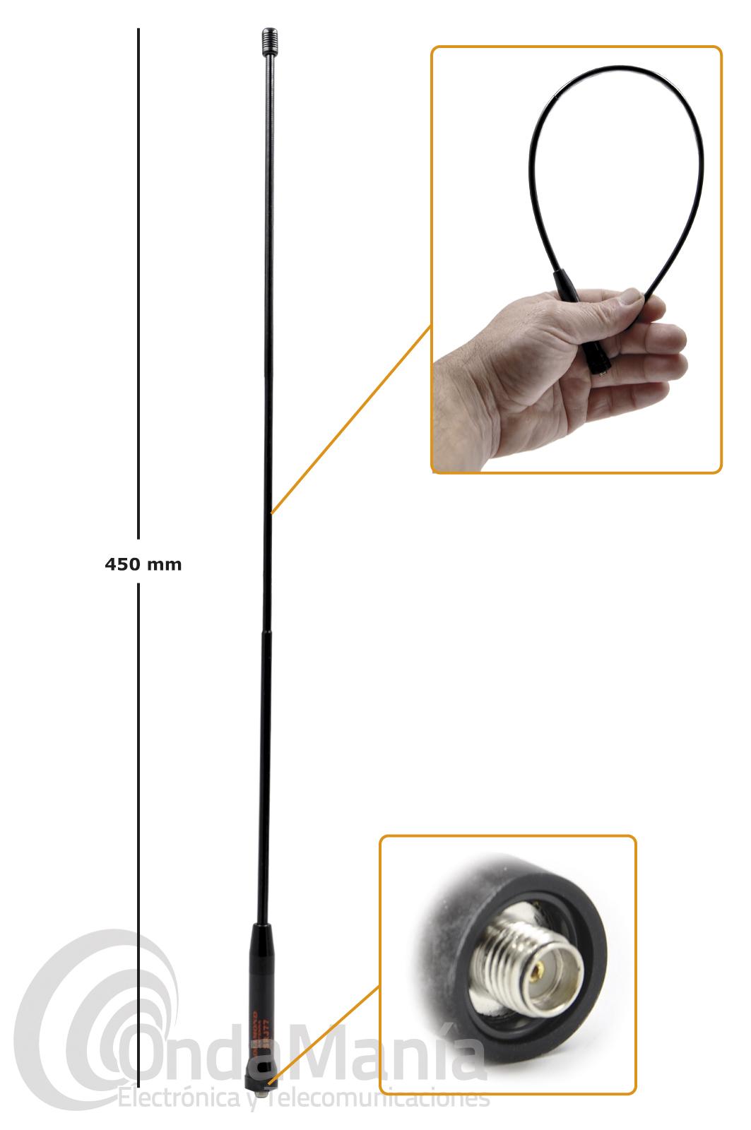 Antena Diamond original doble banda 144/430 MHz con una RX ampliada 120/150/300/450/800 y 900 MHz, con conector SMA invertido, ideal para walkys fabricados en China.