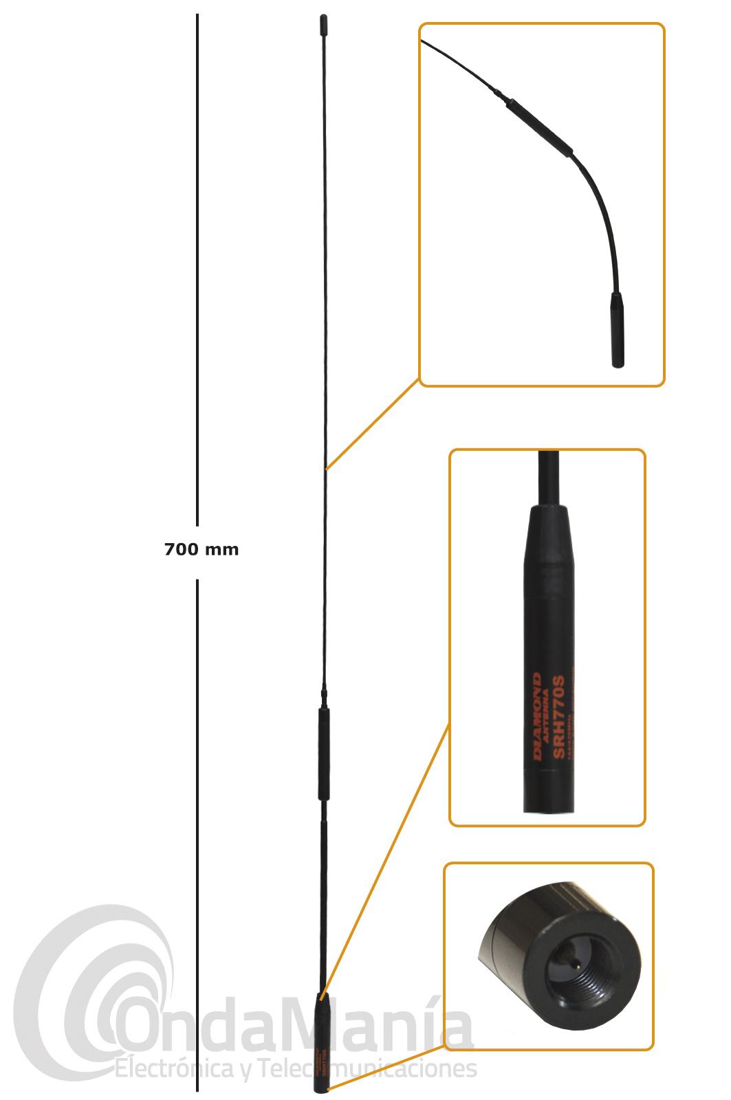 ANTENA DIAMOND SRH-770S DOBLE BANDA VHF Y UHF 144/430 MHZ CON CONECTOR SMA MACHO