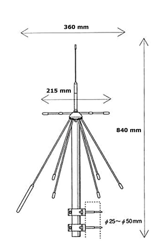 Antena discono Diamond D-190 con una longitud de 0,84 m, un rango de frecuencia en RX de 100 a 1500 Mhz y rango de frecuencia en TX: 144, 430, 904 y 1200 Mhz, incluye 10 metros de cable RG-58 con dos conectores PL en cada extremo del cable.