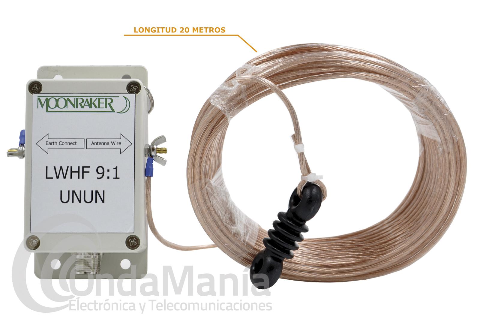 El Moonraker LWHF-80 es una antena de hilo multibanda con 9:1 Unun con 20 metros de longitud. Ideal para las bandas de 80-6m, bandas WARC.