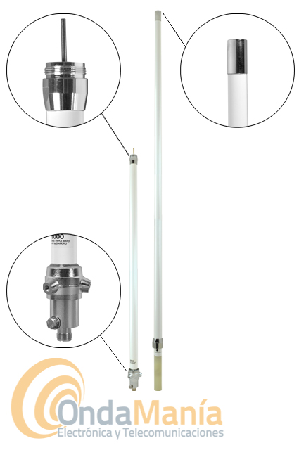 Antena de base tribanda 50 / 144 / 430 Mhz original Japón con una longitud de 2,5 mts, 150 W y tres radiales.