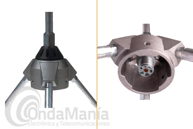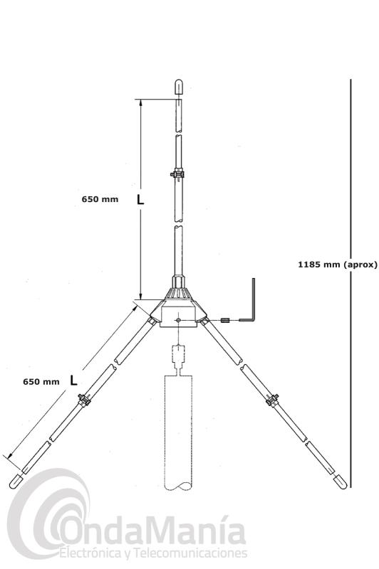 Antena de aluminio de base de 1/4 de onda, con un rango de frecuencia de 108 a 136 Mhz.