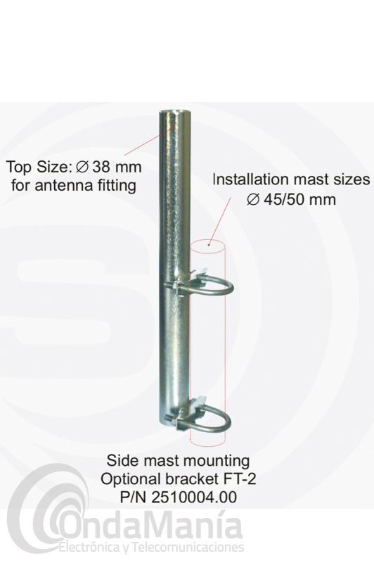 Antena de aluminio de base de 1/4 de onda, con un rango de frecuencia de 66 a 108 Mhz.