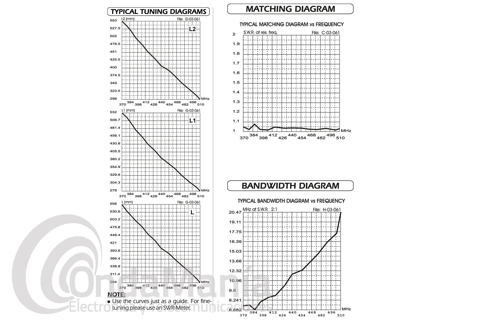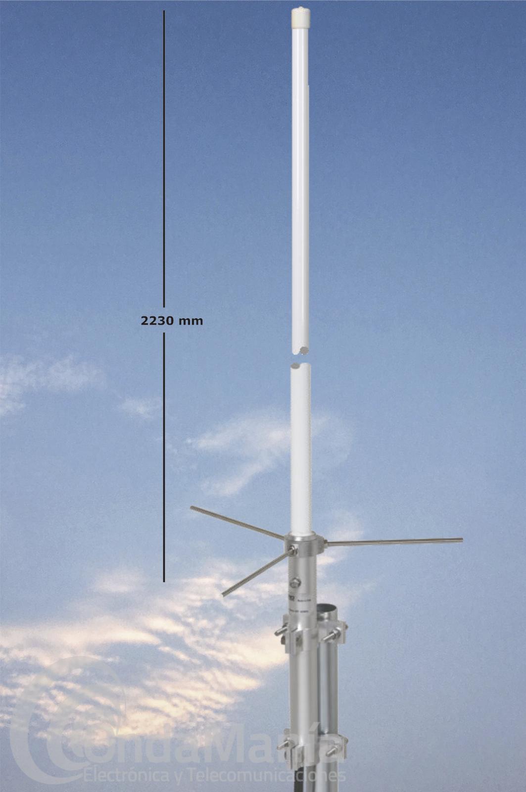 Antena de base de UHF de 370 a 510 Mhz, 3 x 5/8, con una potencia máxima 200 Watt. Fabricada en latón y aluminio y fibra de vidrio. Conector tipo N.