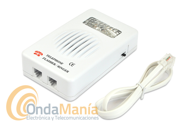Timbre telefónico supletorio adaptable a cualquier teléfono con cable, aparte del sonido incluye un led indicador de llamada. Indicado para personas con deficiencias auditivas o ambientes ruidosos.