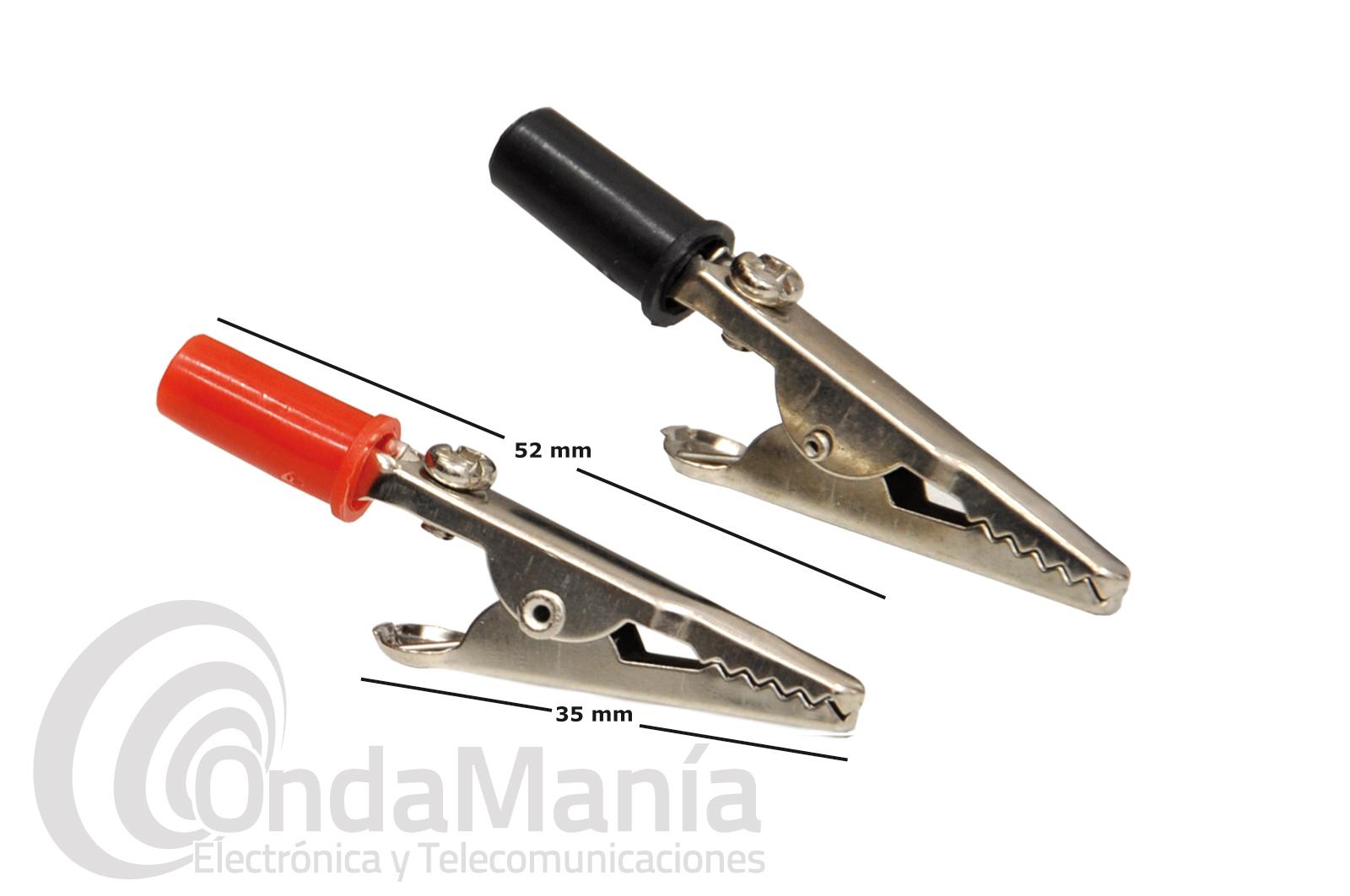 PAREJA DE PINZAS DE COCODRILO AISLADAS 4 MM DE COLOR ROJO Y NEGRO