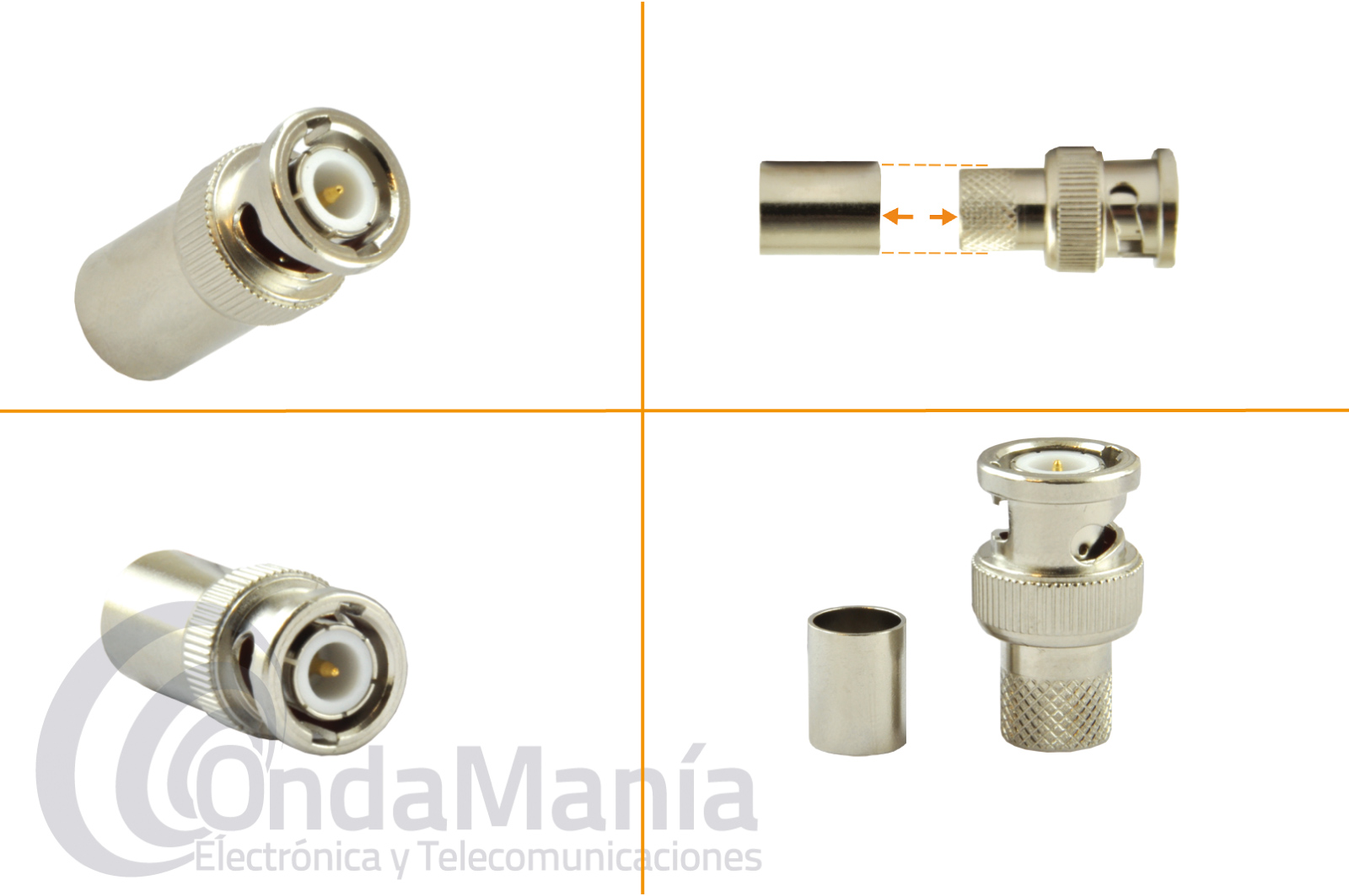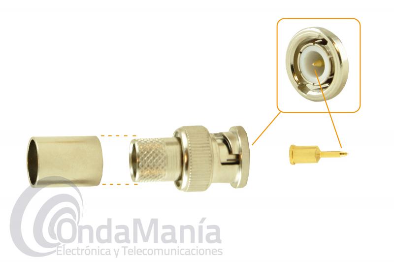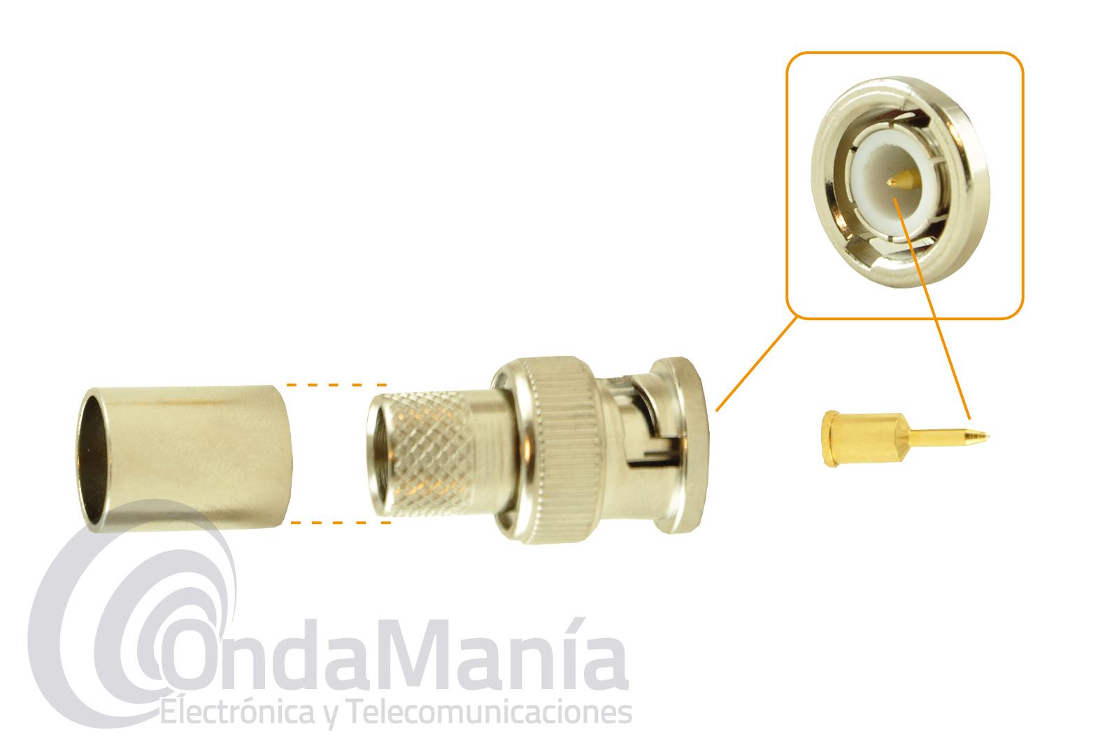 CONECTOR BNC MACHO PARA CRIMPAR EN RG-174, LMR-100, PTFE,...
