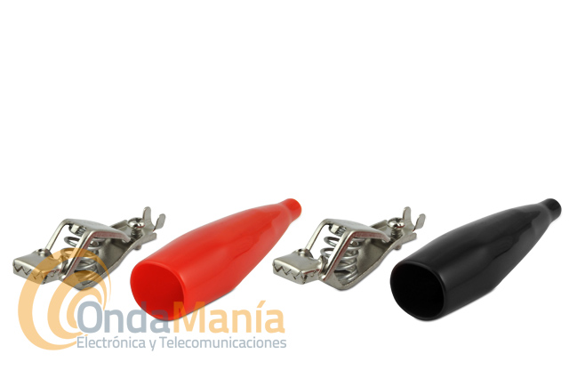 PAREJA DE PINZAS DE COCODRILO AISLADAS 4 MM DE COLOR ROJO Y NEGRO