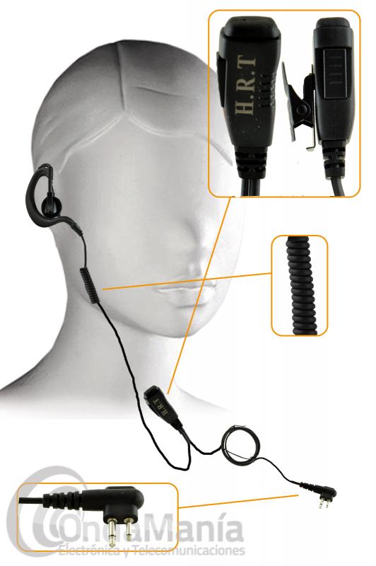 El micrófono auricular 130R-GP300 es uno de los mas discretos pinganillos para Motorola GP-300, DP-2400,... Dynascan DA-350, R-58, V-600, Kombix RL-120U, Midland, Yaesu FT-25, FT-65,... También es compatible con el UNIMO PZ-400