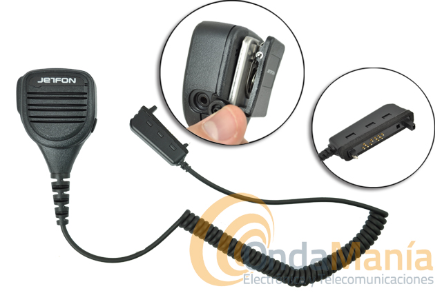 Fabricado en material muy resistente, este robusto micro-altavoz dispone de un altavoz capaz de reproducir el sonido con una elevada calidad de audio. El pulsador PTT se ha reforzado y dimensionado para ofrecer la máxima fiabilidad al pulsarlo incluso con guantes. Dispone de conector lateral jack de 3,5 mm para la conexión de auricular exterior y desconexión del altavoz a fin de proporcionar mayor privacidad en la conversación. El cable reforzado tiene forma rizada tipo muelle para aportar la máxima flexibilidad y maniobrabilidad.