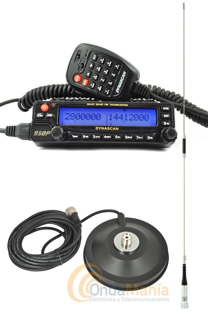 950P Pack SG-M510 compuesto de una emisora con 4 bandas Dynascan 950P con una antena Diamond Original SG-M510, una base magnética BA-31 y un adaptador N-P.