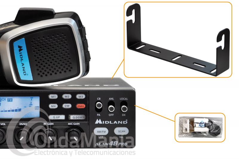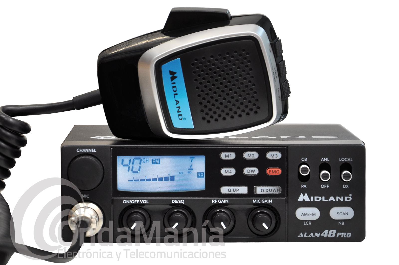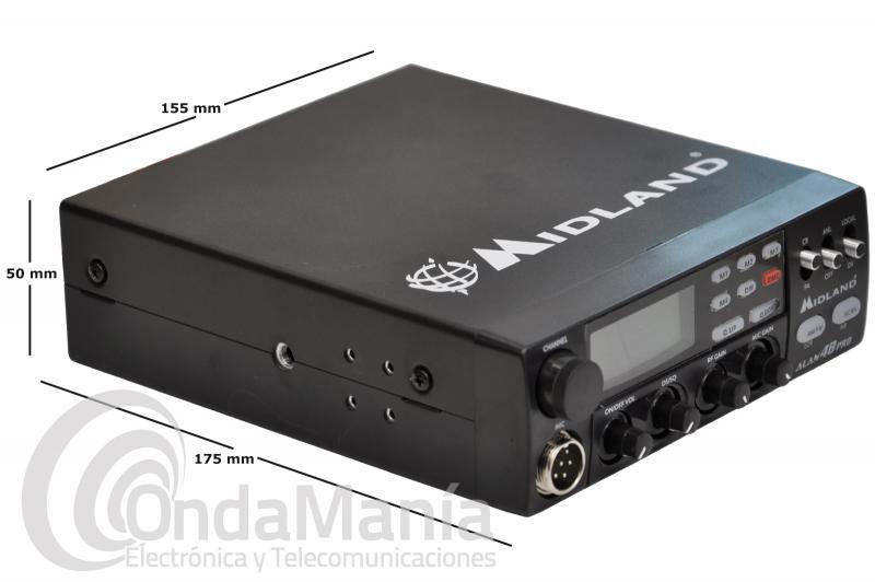 La Midland Alan-48 PRO 12/24V es una emisora de banda ciudadana bi-tensión 12 y 24V con AM y FM multi-norma Europea, esta equipada con squelch digital, y filtro noise blanker, podemos subir y bajar los canales desde su micrófono, dispone de escáner, función Dual Wach, toma externa para s-meter, toma trasera PA,.....