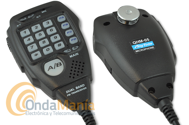 - Incluye micrófono con teclas retroiluminadas con subida y bajada de frecuencias o canales y teclado numérico y tecla de conmutación de bandas A/B