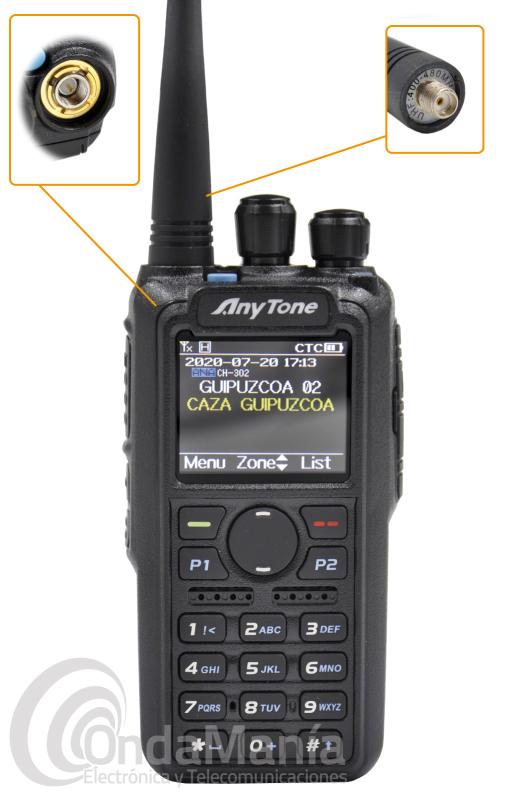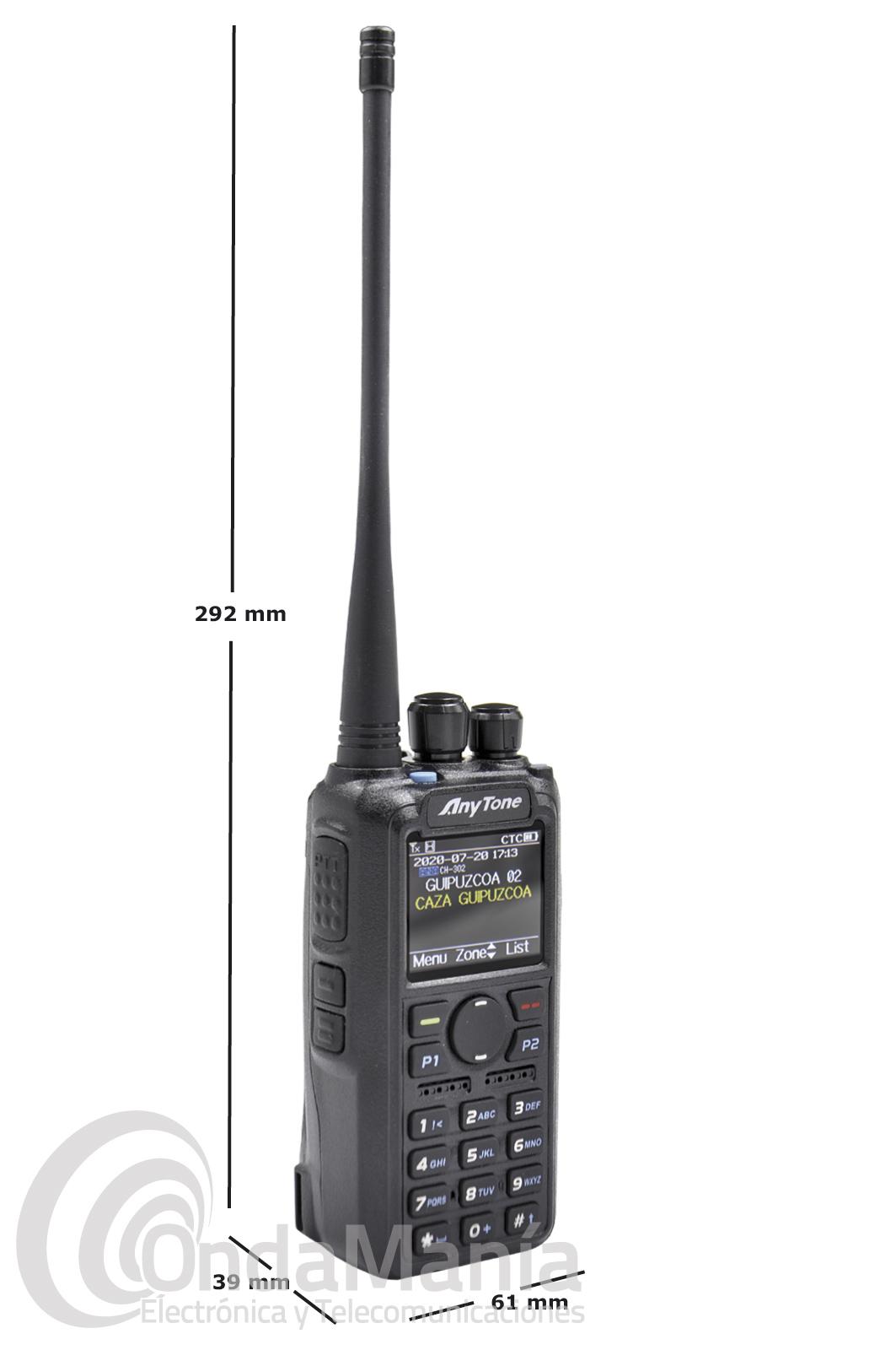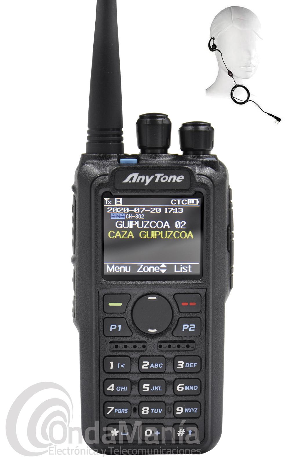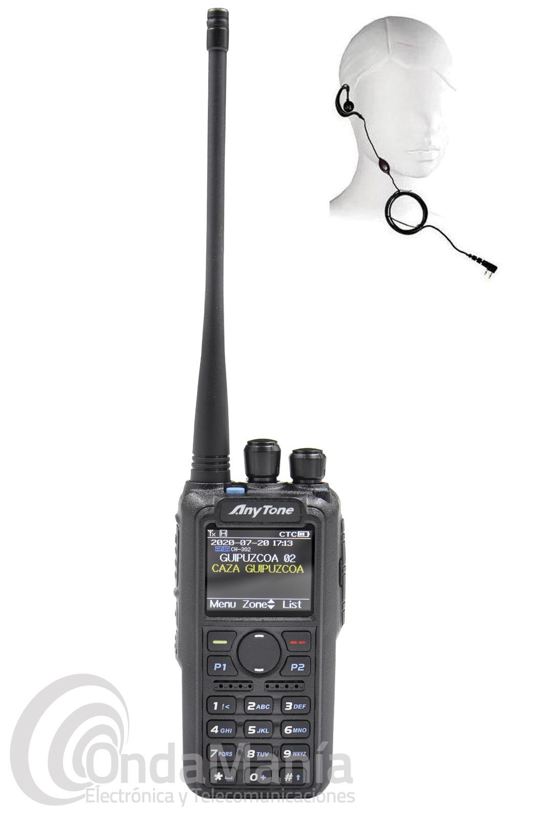 Walkie talkie digital DMR y analógico profesional con GPS incorporado, rango de frecuencia de 440 a 470 Mhz (UHF), Anytone AT-D878S-U ideal para caza, dispone de 4000 canales de memoria alfanuméricos, 9W de potencia, pantalla TFT de color con 1,77", incluye batería de Ion-litio con 3100 mAh, cargador de sobremesa y pinganillo de regalo.