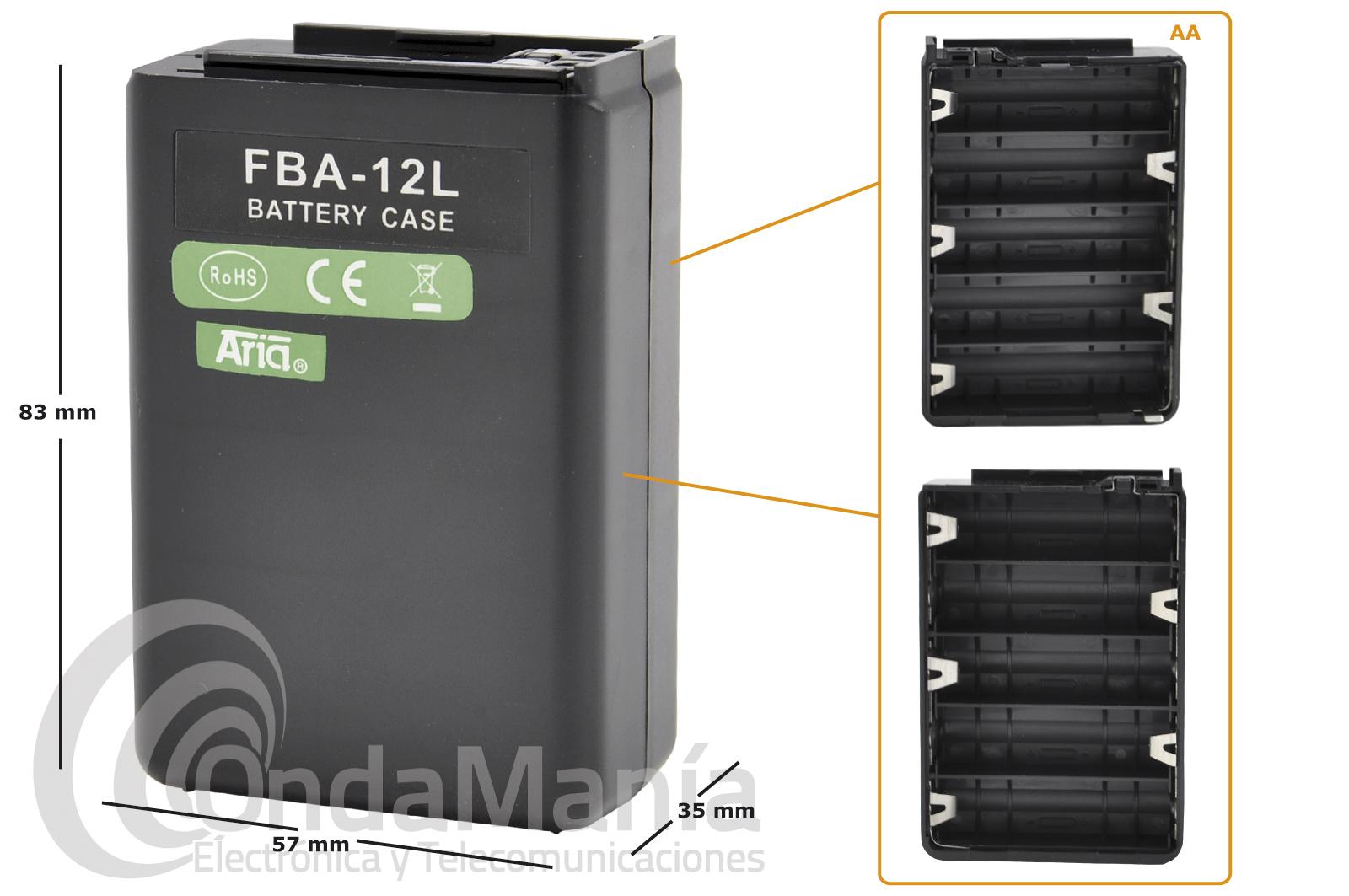 Portapilas Aria para walkies Yaesu FT-26, FT-27, FT-415, FT-416, FT-530,.... Requiere 10 pilas tipo AA (R-6) no incluidas.