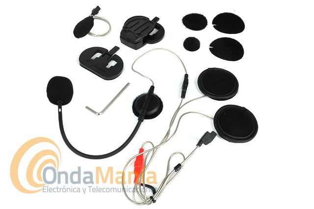 Kit completo de audio con altavoces estéreo, micrófono de varilla regulable para cascos semi-integrales o tipo "schuberth" y otro micrófono para cascos integrales, también incluye soportes de fijación uno con tornillos y otro de pegar para los BTX1, BTX2 y BT-NEXT