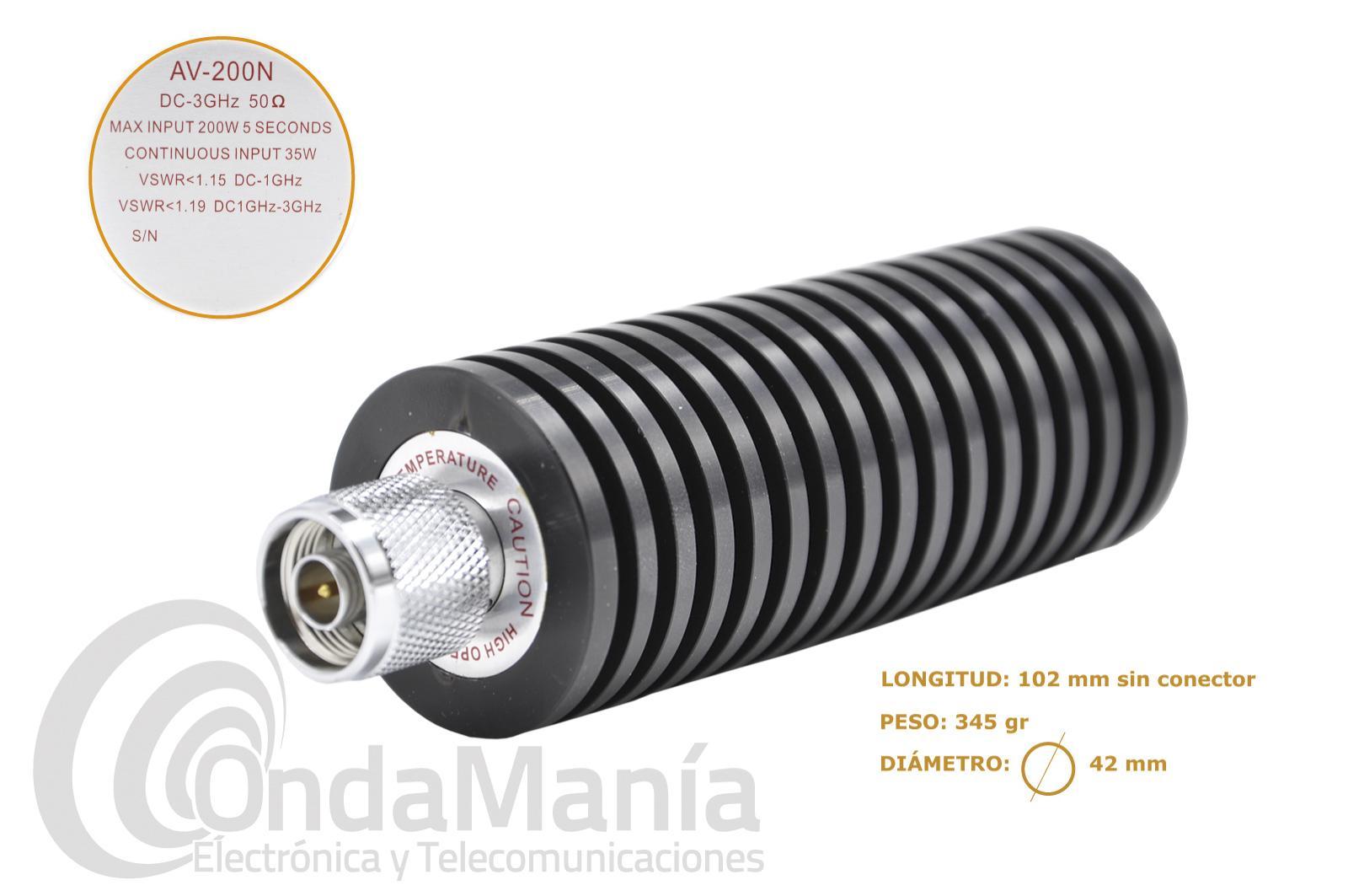La Avair AV-DL200N es una carga ficticia o artificial con conector N macho.