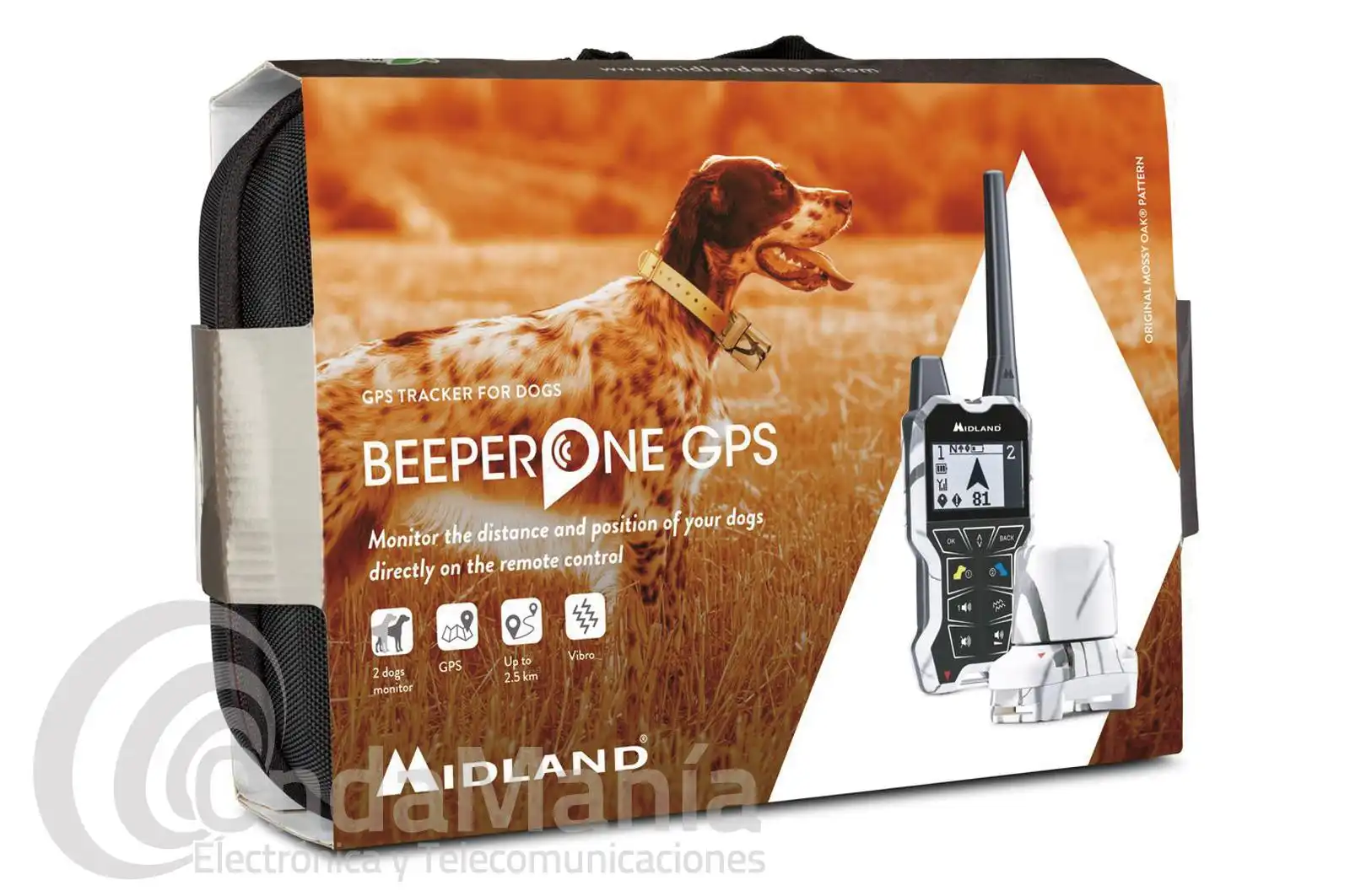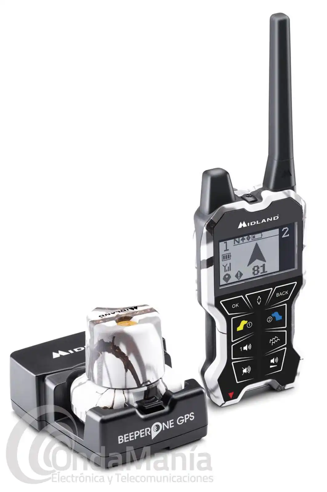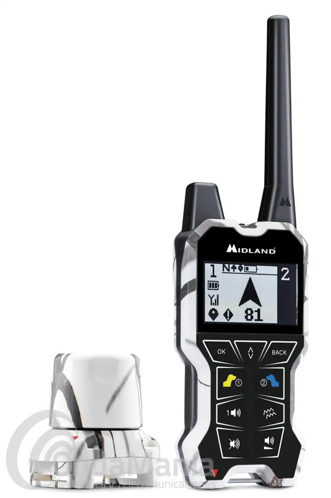 Monitoreo y gestión de 2 auxiliares - Cobertura hasta 2,5km - Visualización de distancia y posición de tus auxiliares - Aviso de perro parado en el mando - " Función "Vibración" en el collar y control remoto - Control remoto con pantalla grande para la localización inmediata de tus perros - Modo de funcionamiento del collar ajustable a distancia - Pilas recargables - Collar impermeable IPX7