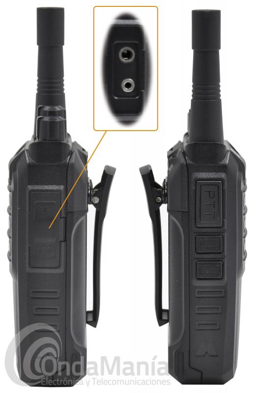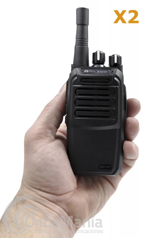 El pack incluye: 2 transceptores Midland BR-02, 2 clips de cinturón, 2 adaptadores de CA/CC, 2 bañeras doble de carga, 2 baterías de li-ion con 1800 Mah y 2 pinganillos originales Midland.