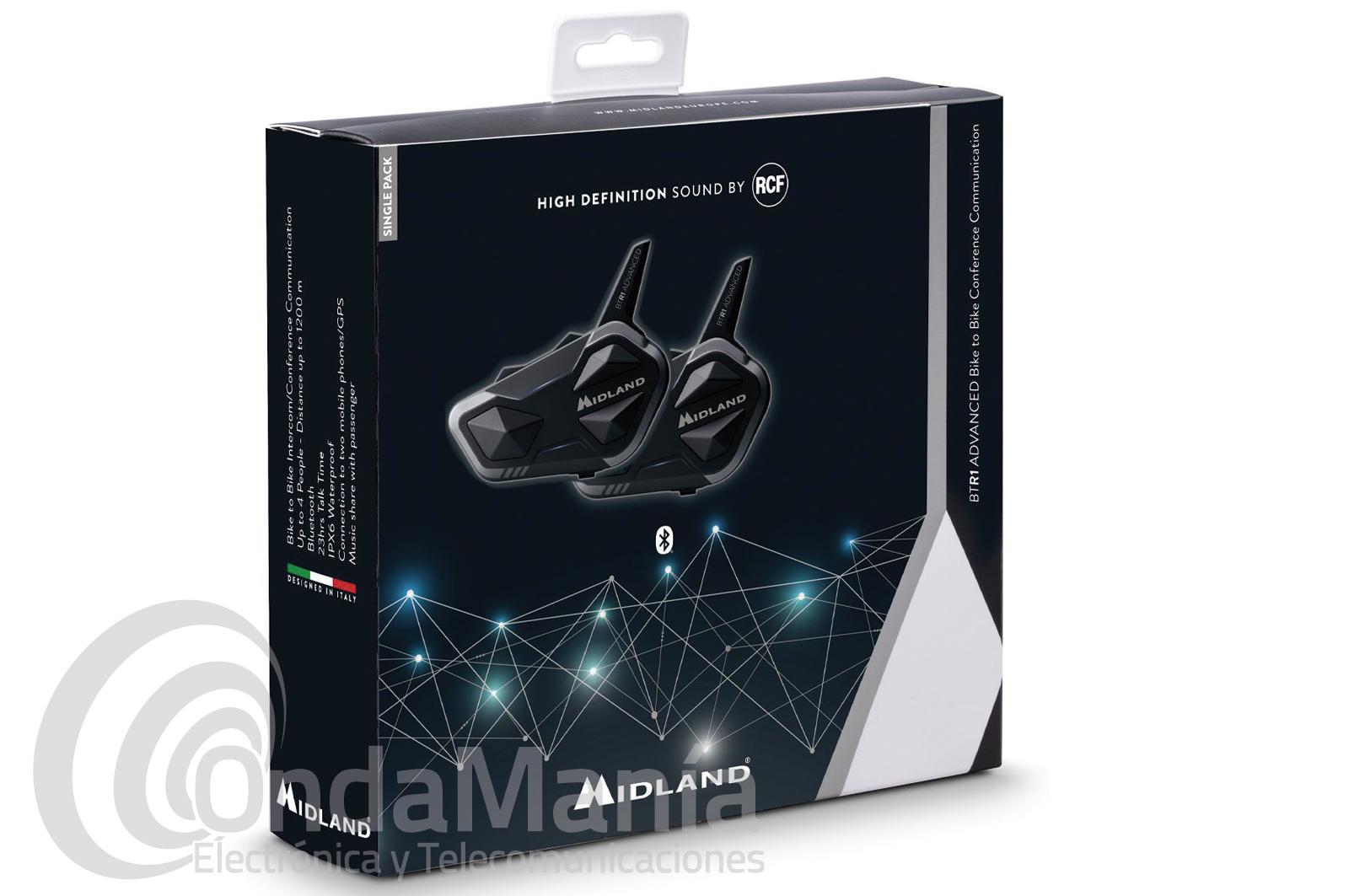 El intercomunicador para moto Midland BTR1 ADVANCED TWIN es un equipo para piloto y copiloto con la mejor relación precio/rendimiento. Adelantado a los demás de su categoría, el Midland BTR1 Avanced está equipado con una tecnología que en modo Conferencia permite que 4 personas se comuniquen entre sí en modo conferencia hasta una distancia de 1.200m entre moto y moto. El BTR1 ADVANCED TWIN también es pionero en calidad de sonido, que llega a los oídos del motociclista a través de un sistema de audio dedicado, diseñado por el departamento de I+D de la marca RCF.