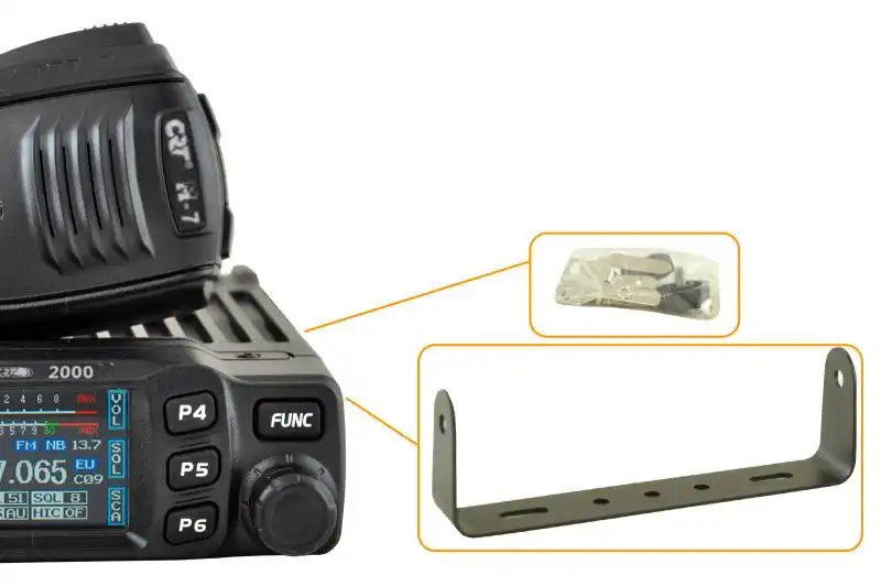 Incluye: 1 Transceptor CRT 2000HP, 1 micrófono de mano, 1 soporte de montaje con tornillería, 1 soporte para micrófono, 1 fusible de recambio y manual de instrucciones en Francés/Inglés.