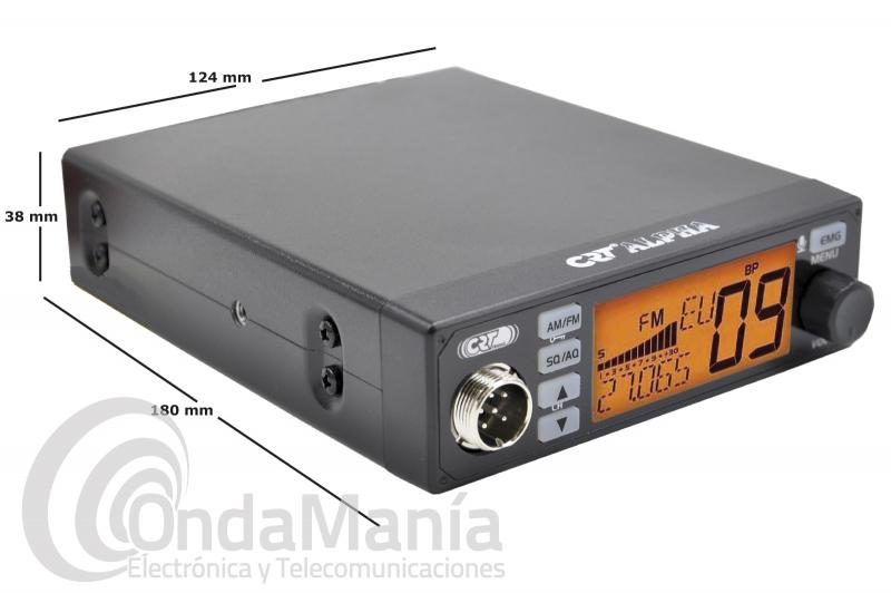 El pack incluye: emisora CRT Alpha, micrófono con teclas de subida y bajada de canales, soporte de emisora, soporte de micrófono, tornillería y manual de instrucciones en francés e inglés.