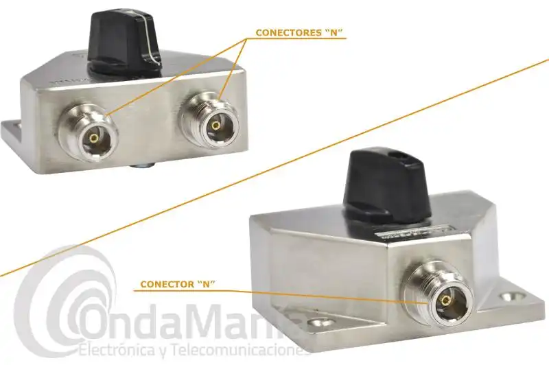 El conmutador de antena Daiwa CS-201-GII es un conmutador coaxial con conectores N, dispone de 1 entrada y dos salidas, con un rango de frecuencia de hasta 1,3 Ghz., con una potencia máxima de 1500 w en HF y una impedancia de 50 Ohm.