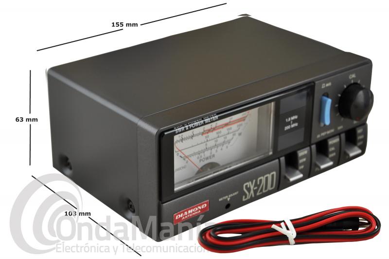 Medidor Diamond SX-200 de 1,8 Mhz. hasta 200 Mhz. con una potencia máxima de 200 W, posee botón para lectura de picos (AVG) y mide potencia directa y reflejada.