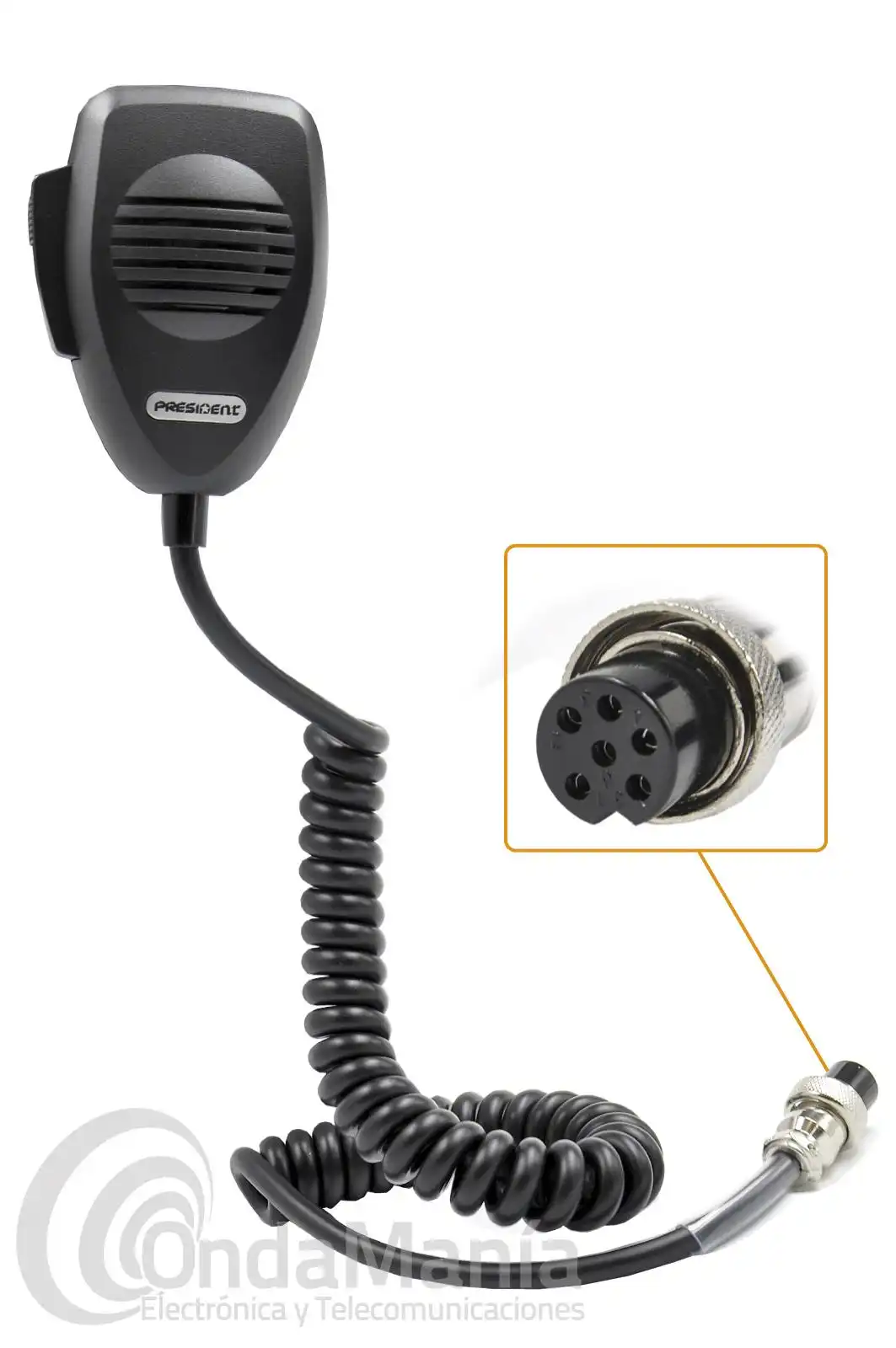 Micrófono President con conector de 6 pins. Compatible con la gran mayoría de emisoras President