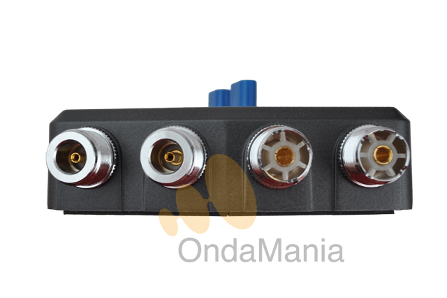 Conmutador coaxial de antena con 4 entradas dos con conector PL y dos con conector N a una salida.