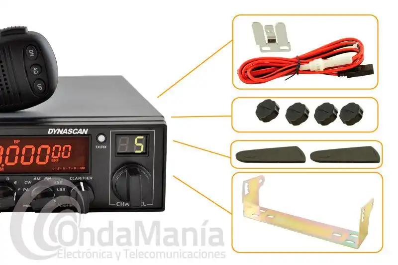 La emisora Dynascan AT-5555 PLUS/NCR nos ofrece una potencia de salida ajustable de 45 vatios (AM/CW) y 40W (FM) 35W en SSB, medidor de ROE y frecuencímetro de 7 dígitos, saltos de frecuencia de: 10 Hz / 100 Hz / 1 kHz / 10 kHz.