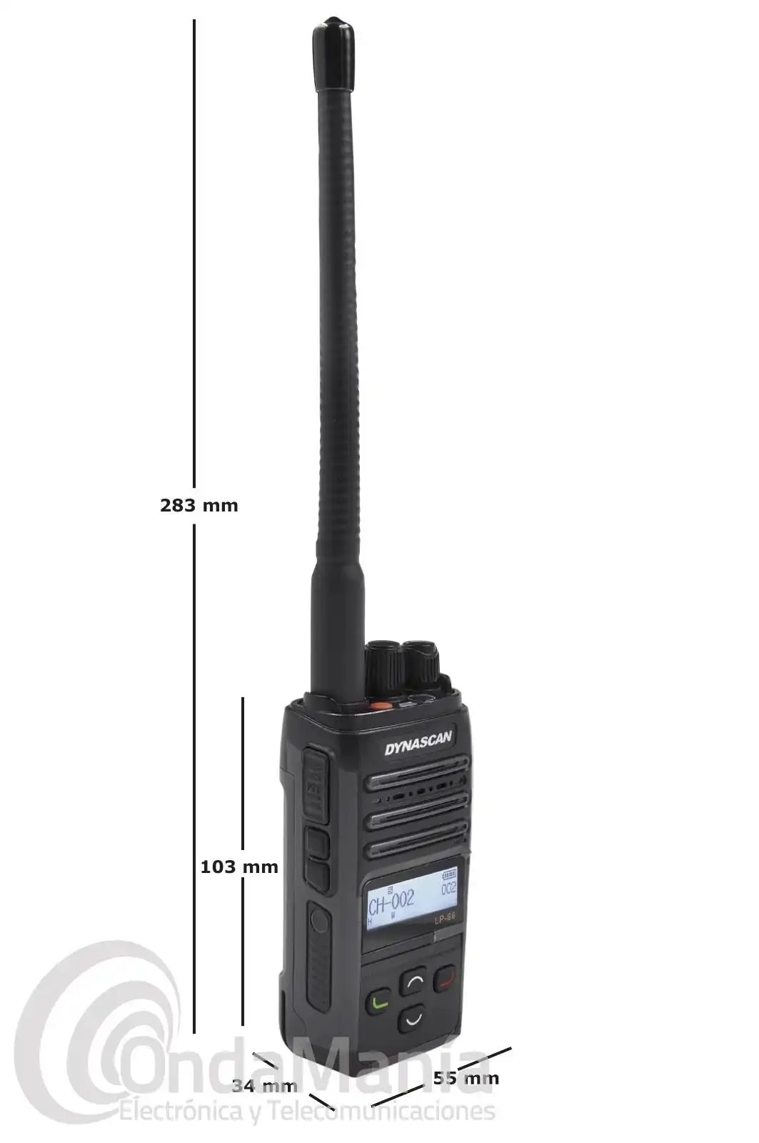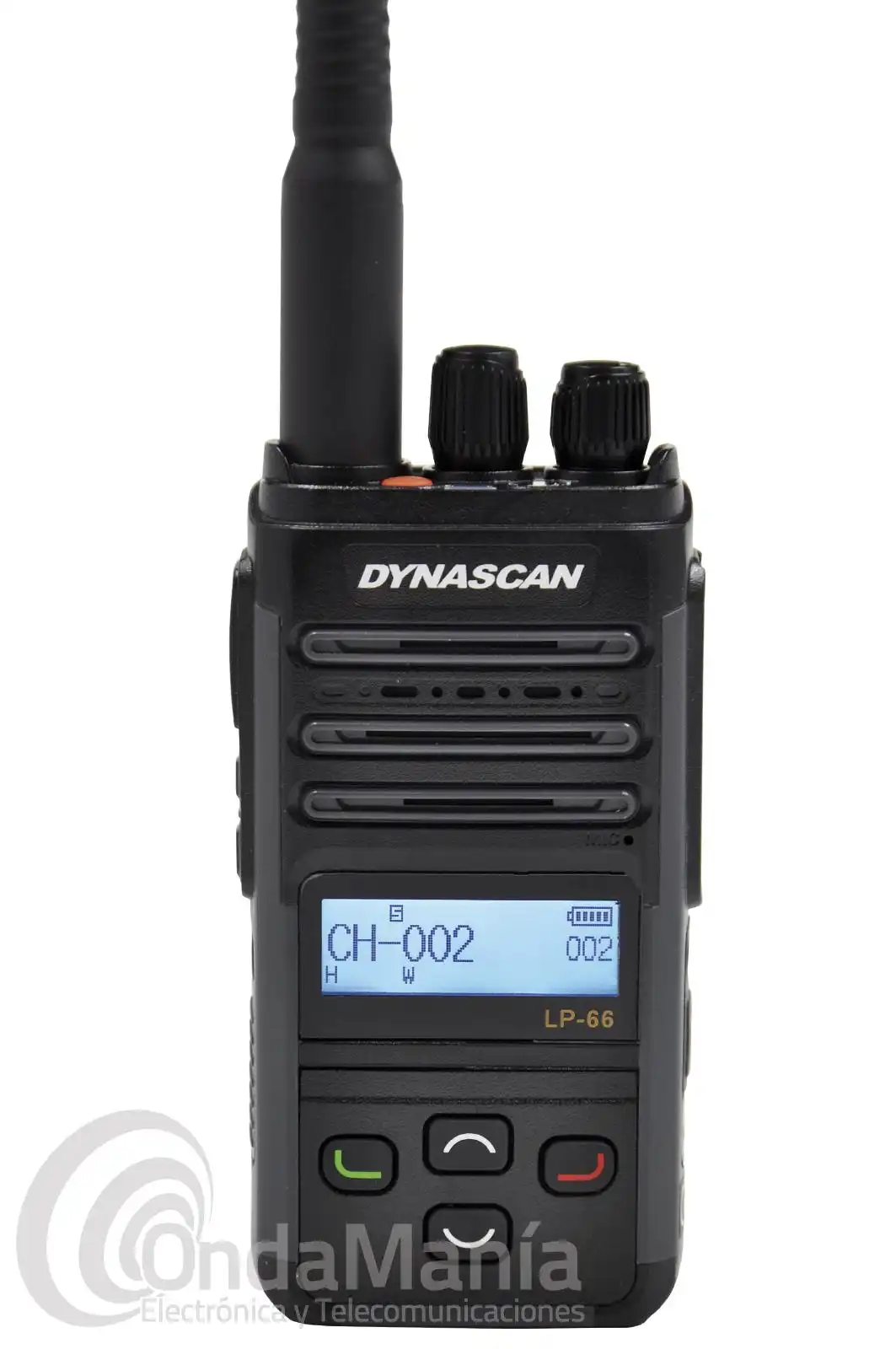 El Dynascan LP-66 es un walkie talkie profesional para la banda baja de VHF (66 a 88 MHz). Con hasta 400 canales de memoria programables, codificación/descodificación DCS/CTCSS, llamada selectiva de 5 tonos, función de llamada de emergencia, pantalla LCD para visualizar fácilmente cualquiera de los canales programados,, entre otras funciones destacadas. El LP-66 está equipado con todas las características que necesita un equipo de radio portátil de uso profesional, con un grado de protección al polvo y el agua tipo IP65 lo que lo hace un dispositivo de comunicación perfecto para aquellas personas que trabajan en el exterior.
