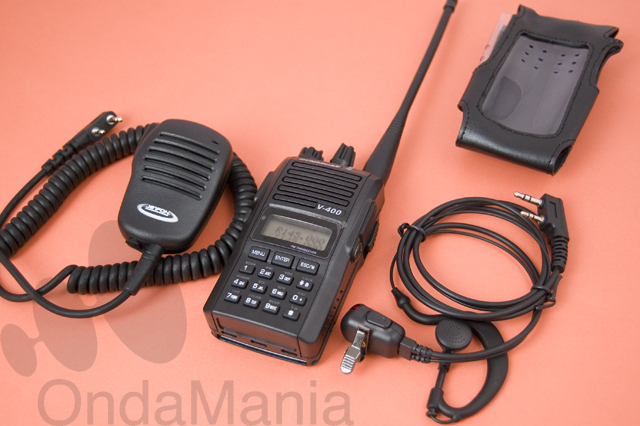 El pack incluye: 1 Dynascan V-400, 1 cargador rápido de sobremesa, 1 Antena, 1 Micrófono auricular, 1 Funda, Manual de instrucciones en castellano, 1 pinza de cinturón, 1 alimentador de 220 V y 1 batería de litio.