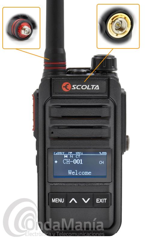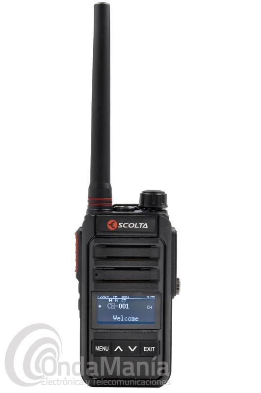 Walkie talkie de VHF analógico Escolta Fox RP-203 con linterna, radio FM comercial, es un equipo profesional, con display, muy robusto, con un grado de protección IP67 contra polvo y agua, con un rango de frecuencia de 147 a 174 Mhz, con 2 x 250 canales, 4 W de salida, tonos CTCSS y DSC, función scrambler, escáner,....