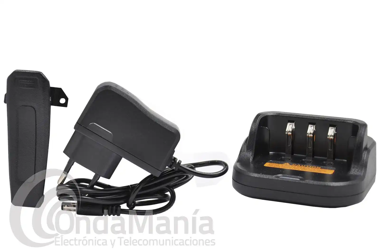 El Dynascan EU-55 es un transceptor portátil que nos ofrece una gran autonomía de funcionamiento, gracias a su batería de Ion-Lítio de 1.500 mAh, y su facilidad de carga directa mediante cable USB tipo C (no incluido) o con la base de carga de sobremesa incluida.