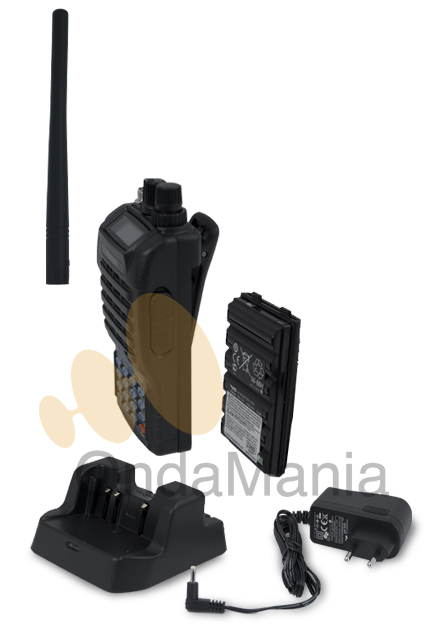 El pack incluye: walky, batería de alta capacidad 1800 mAh, antena, cargador de base, manual y micrófono auricular. |