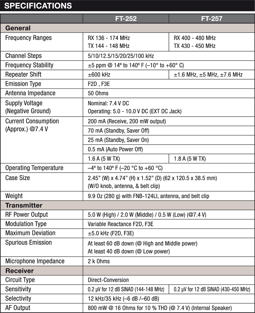 El Yaesu FT-252E es un equipo portátil de FM, compacto, sumergible (IPX5) y de alto rendimiento, que proporciona hasta cinco vatios de potencia de RF y múltiples funciones prácticas para operaciones de banda para aficionados de la banda de 2 metros (VHF).