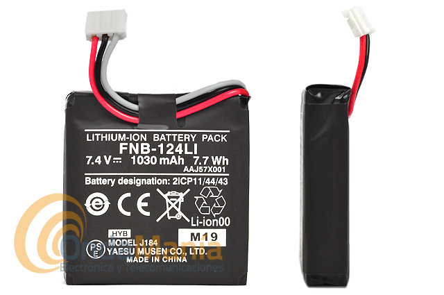 Incluye batería de litio FNB-124LI con 7,4 V y 1030 mAh.