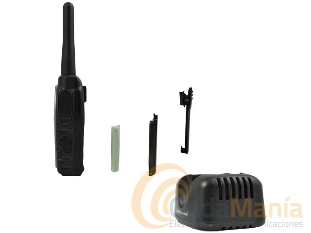 Contenido: 1 radio Midland G8E-BT, 1 cargador de sobremesa individual, 1 adaptador de corriente, 1 pack de baterías, 1 clip de cinturón, 1 PTT de hilo para manillar.