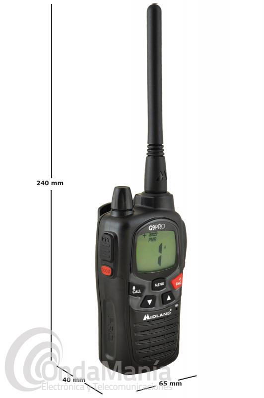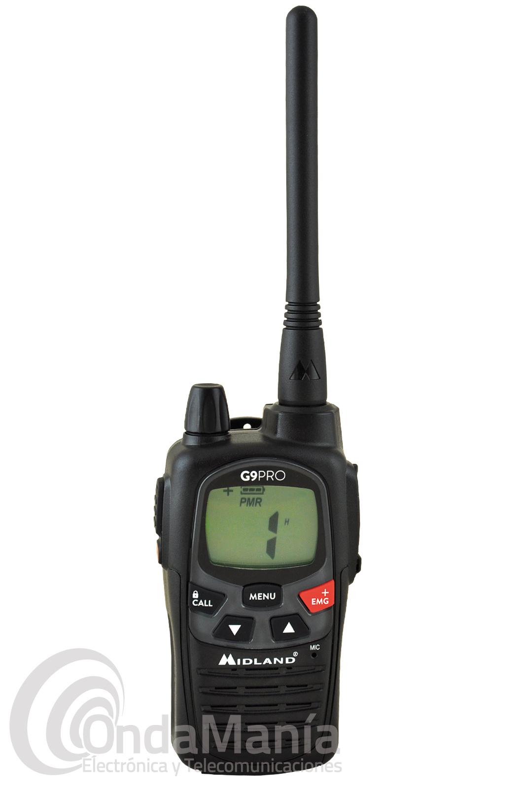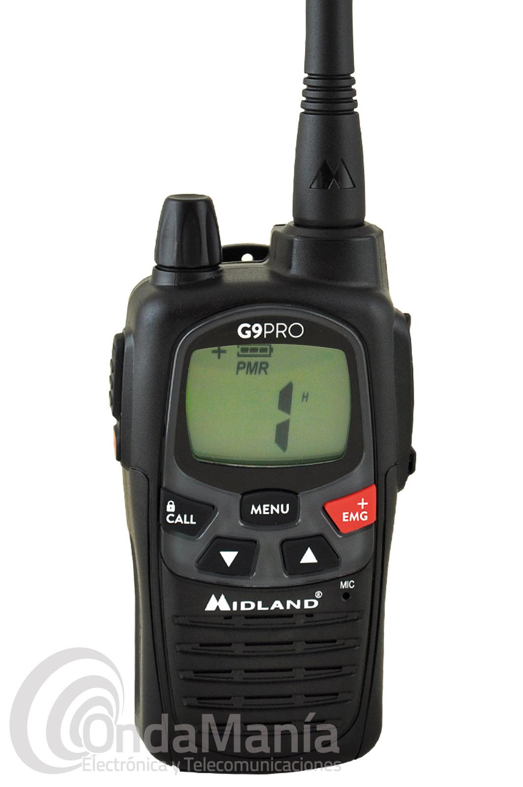 WALKI TALKI DE USO LIBRE PMR-446 MIDLAND G9 PRO - OUTLET - - El walki talky de uso libre PMR-446 Midland G9 PRO es una evolución natural de su antecesor el Midlan G-9, el Midland G-9 PRO nos ofrece una pantalla un 30% más grande, un 30% de audio mejorado, una antena más potente y un PTT doble que permite seleccionar las potencias alta y baja al instante, la comunicación se vuelve mas fácil y agradable.