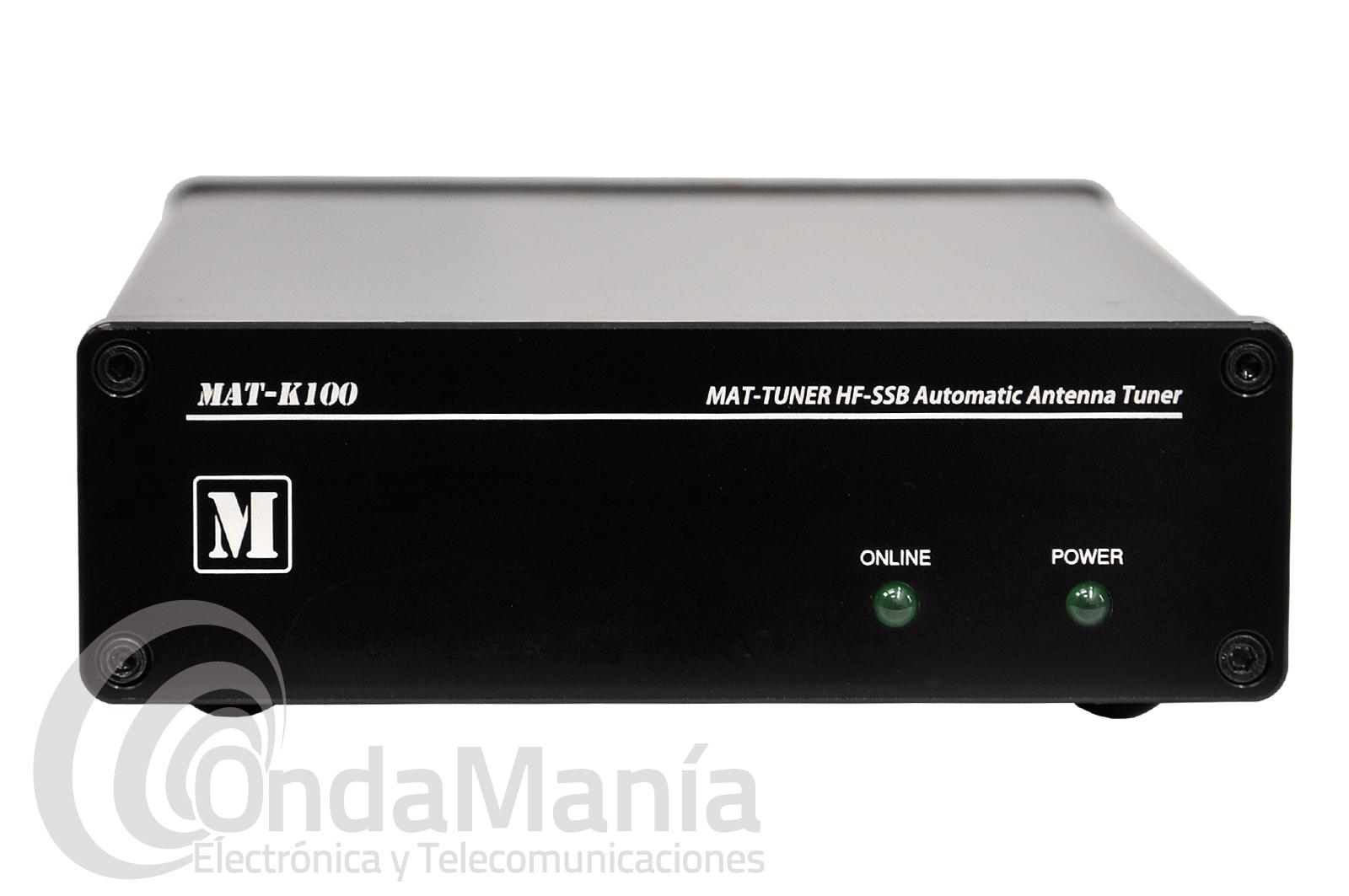 El MAT-K100 es un acoplador/sintonizador automático de antena con una cobertura de 1,6 a 54 Mhz y una potencia máxima de 120 W, diseñado para equipos Kenwood e Icom, incluye de origen el cable para equipos Kenwood, siendo como accesorio opcional el cable para Icom.